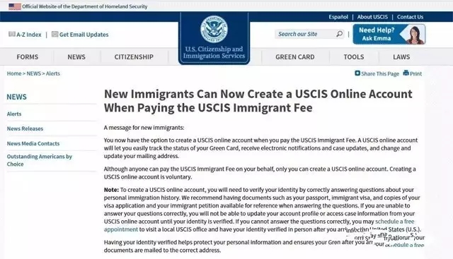 2017年2月份的時候,美國移民局(USCIS)發(fā)布消息:新移民可在移民局USCIS官網(wǎng)創(chuàng)建賬戶,支付移民費。