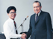 邱少懷先生任職于美國(guó)駐廣州總領(lǐng)事館移民部簽證助理,任職期間與訪華的尼克松總統(tǒng)留下珍貴合影。