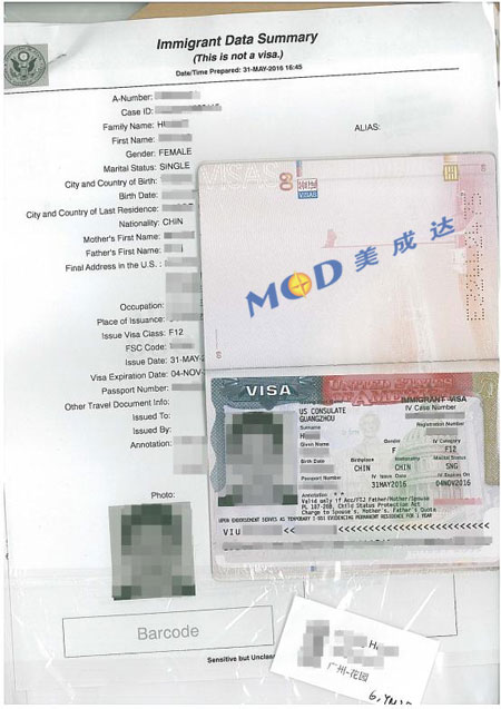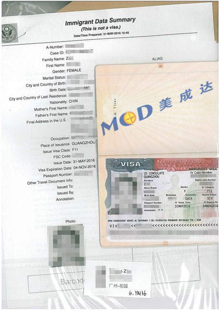 在我司顧問的細(xì)心指引和專業(yè)輔導(dǎo)下,Z女士和她的女兒H女士順利通過F1移民面試,移民簽證在2016年5月底順利簽發(fā),并于2016年6月初順利拿到簽證包裹。