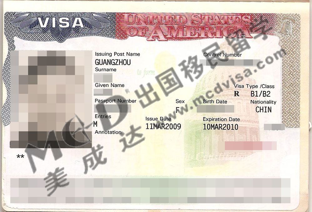 簽證類型:B1/B2美國探親旅游簽證
